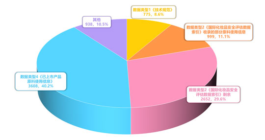中檢院發(fā)布的《化妝品原料數(shù)據(jù)使用指南》提供了7大主要數(shù)據(jù)類型,數(shù)據(jù)類型1《化妝品安全技術(shù)規(guī)范(2015年版)》(原食藥總局〔2015〕268號(hào)公告,簡(jiǎn)稱《技術(shù)規(guī)范》,請(qǐng)注意制修訂項(xiàng)目),有使用要求的原料775種,來自《已使用化妝品原料目錄(2021年版)》(國(guó)家藥監(jiān)局〔2021〕62號(hào)公告,英文Inventory of Existing Cosmetic Ingredients in China,縮寫IECIC),含三個(gè)部分: